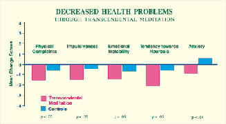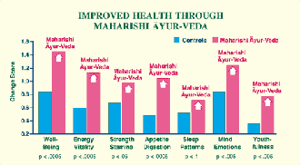 Subjects who participate in Maharishi Ayur-Veda health programmes showed significant improvements on a number of general health measures as compared to controls. Reference: Journal of Social Behavior and Personality 5(3) (1990)1–27